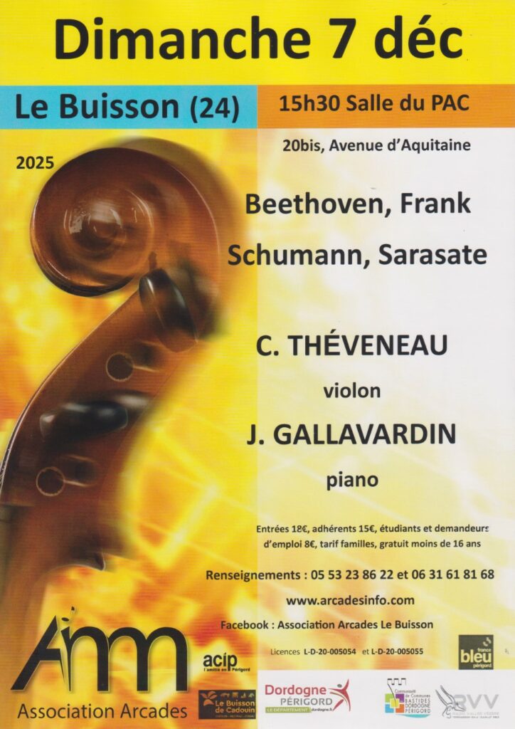 Concert de C. Théveneau (violon) & J. Gallavardin (piano) organisé par l’association Arcades.