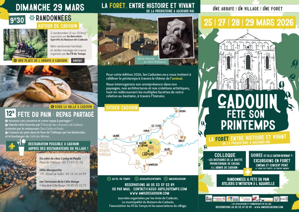Cadouin fête son printemps – 3ème édition – #La forêt entre histoire et vivant, de la préhistoire à aujourd’hui. Du 25 au 29 mars 2026 à Cadouin !