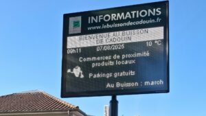 Il existe 2 panneaux lumineux sur le territoire: le premier devant le Pôle de Rencontre, à proximité de la Poste, le second à l’entrée du parking de l’église du Buisson.